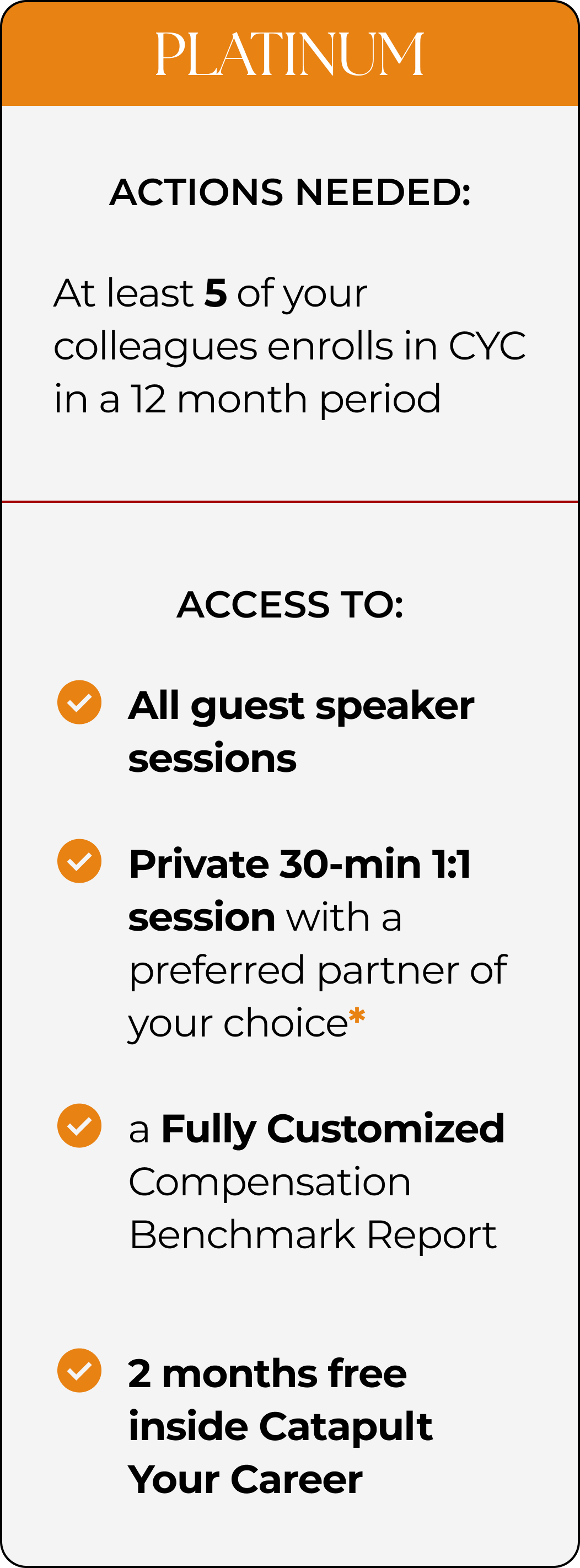 Receive insider access to exclusive sessions with top guest speakers and curated career and life resources—designed for leaders ready to grow in every aspect.